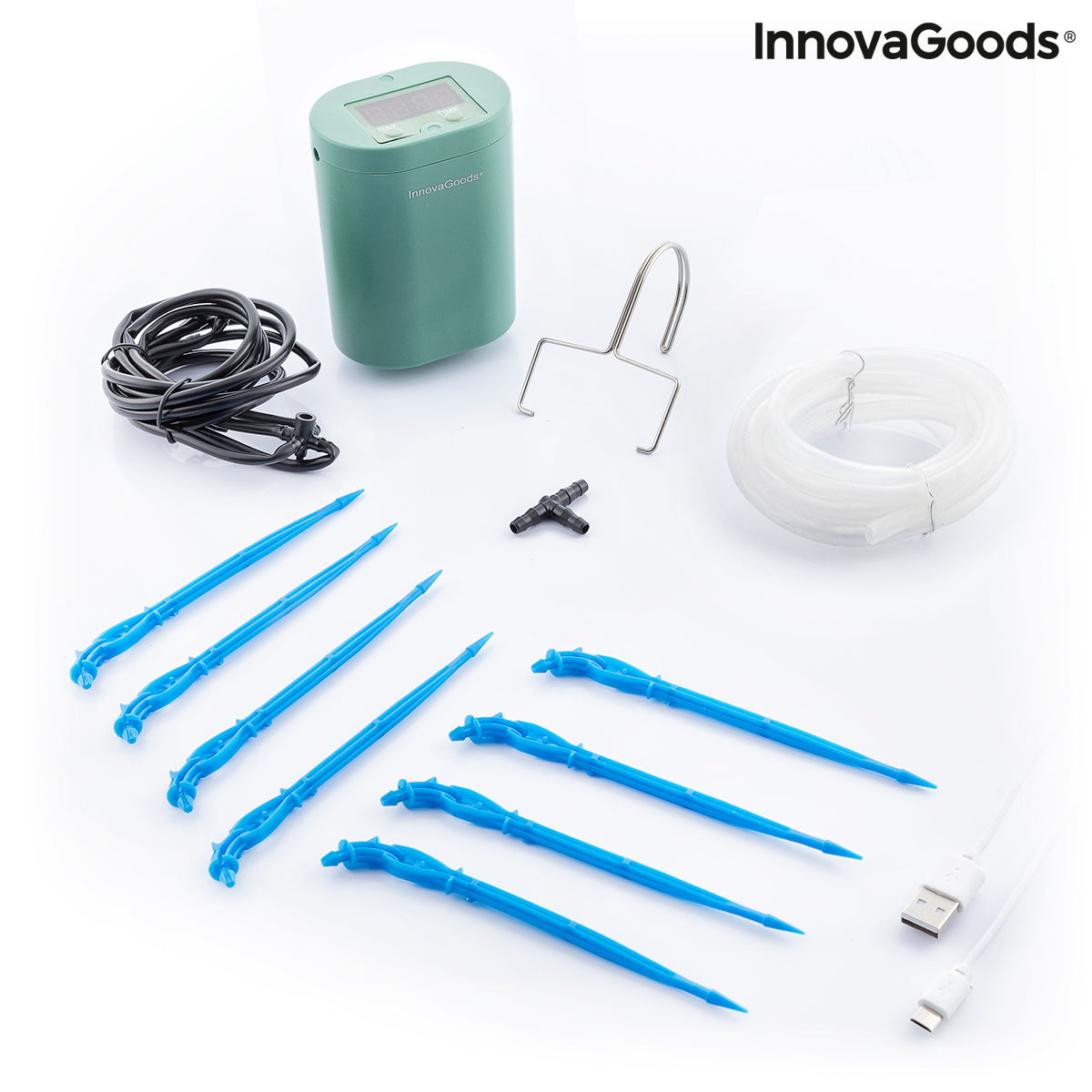 Et originalt og komplett automatisk dryppvanningssystem for plantepotter som gjør at du samtidig kan vanne opptil 8 planter enkelt og enkelt. I tillegg til å spare vann, tid og krefter, tar det hodepine ut av å måtte manuelt vanne planter selv, noe som er en stor hjelp i å utføre denne oppgaven lettere og trygt, uten å glemme eller det blir en byrde, regelmessig, eller mens du er på ferie, etc. Denne vanningsenheten er oppladbar (inkluderer en USB til micro USB-ladekabel) og programmerbar, da den har en digital timer for å indikere gapet mellom vanningsdager (fra 1 til 9 dager) og varigheten av vanning ønsket i sekunder. Settet inneholder en metallhenger for den elektriske enheten, trippelkoblingstilbehøret (T), slange- og vanningsrør og 8 vanningspigger for å sette inn i jorden av hver plantepotte. Det kan enkelt installeres ved å følge monteringsanvisningene som følger med. Den har en strømning på 1200 ml/min (±100 ml) og driftstemperaturen er mellom 5 og 50 ºC. Det gjør det også mulig å vanne manuelt ved hjelp av en av knappene på enheten. Det inkluderer ikke en vanntank for vanning.